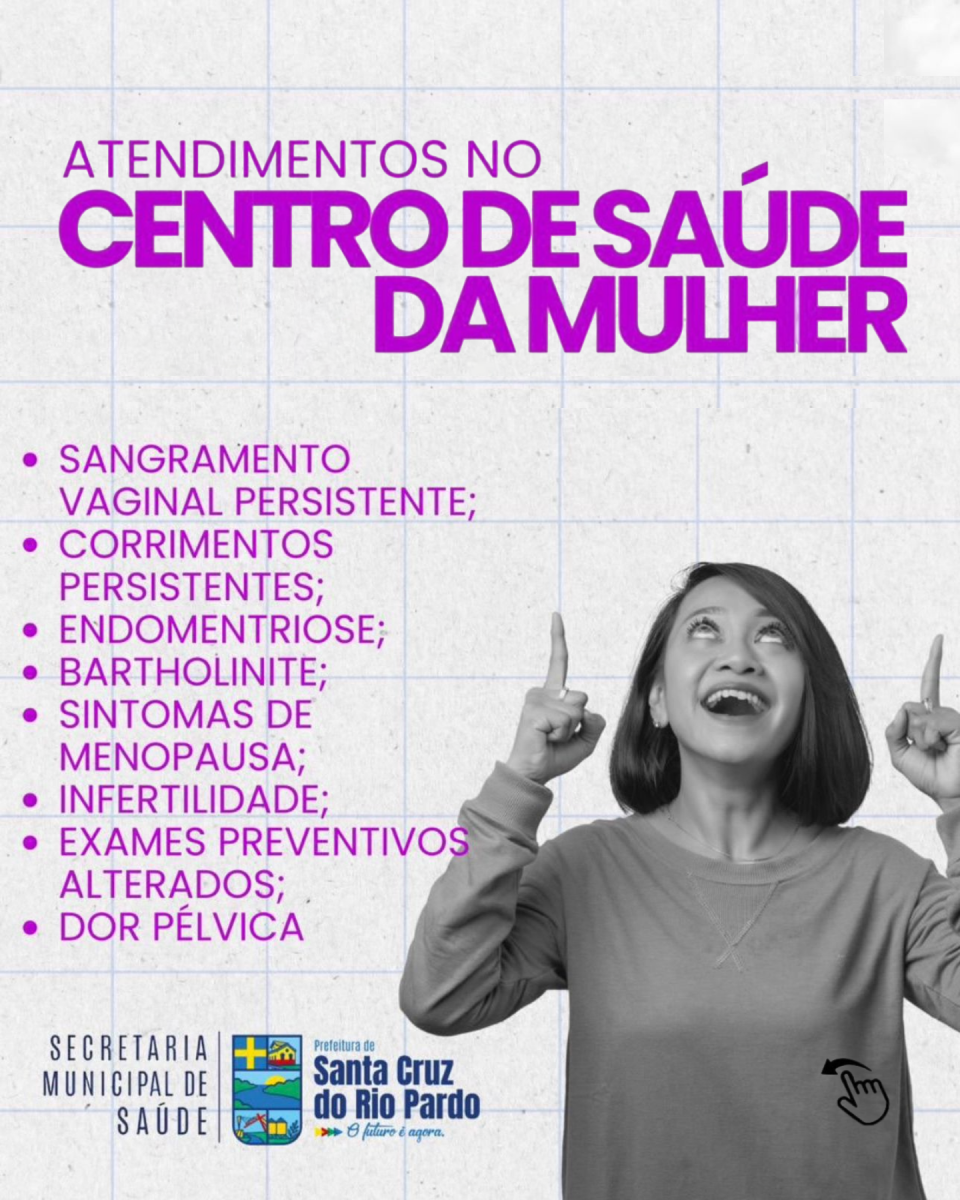 O Centro de Saúde da Mulher realiza atendimentos voltados à saúde feminina, oferecendo acompanhamento e orientação para diversas condições e sintomas.